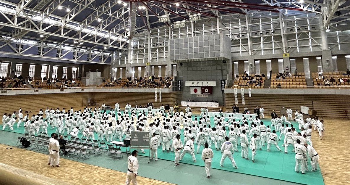 形の披露、模範試合、かかり稽古が行われ