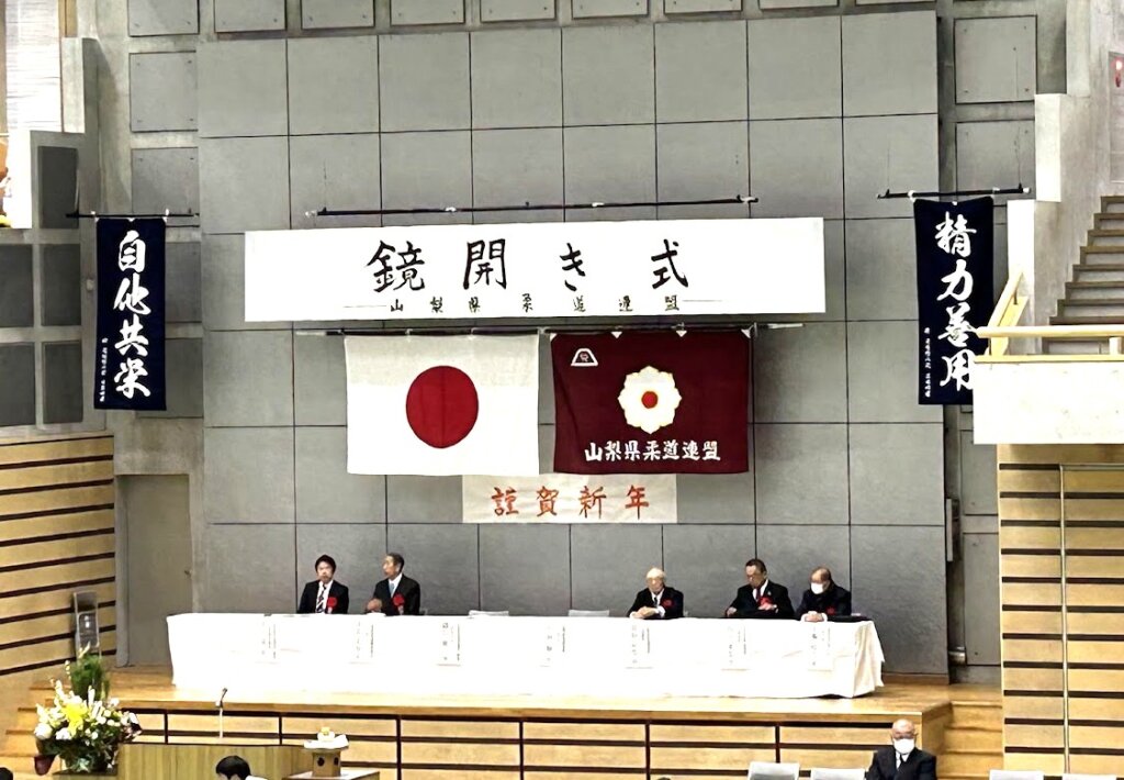 1月4日に小瀬アリ-ナにおいて県の鏡開き式が行われました。