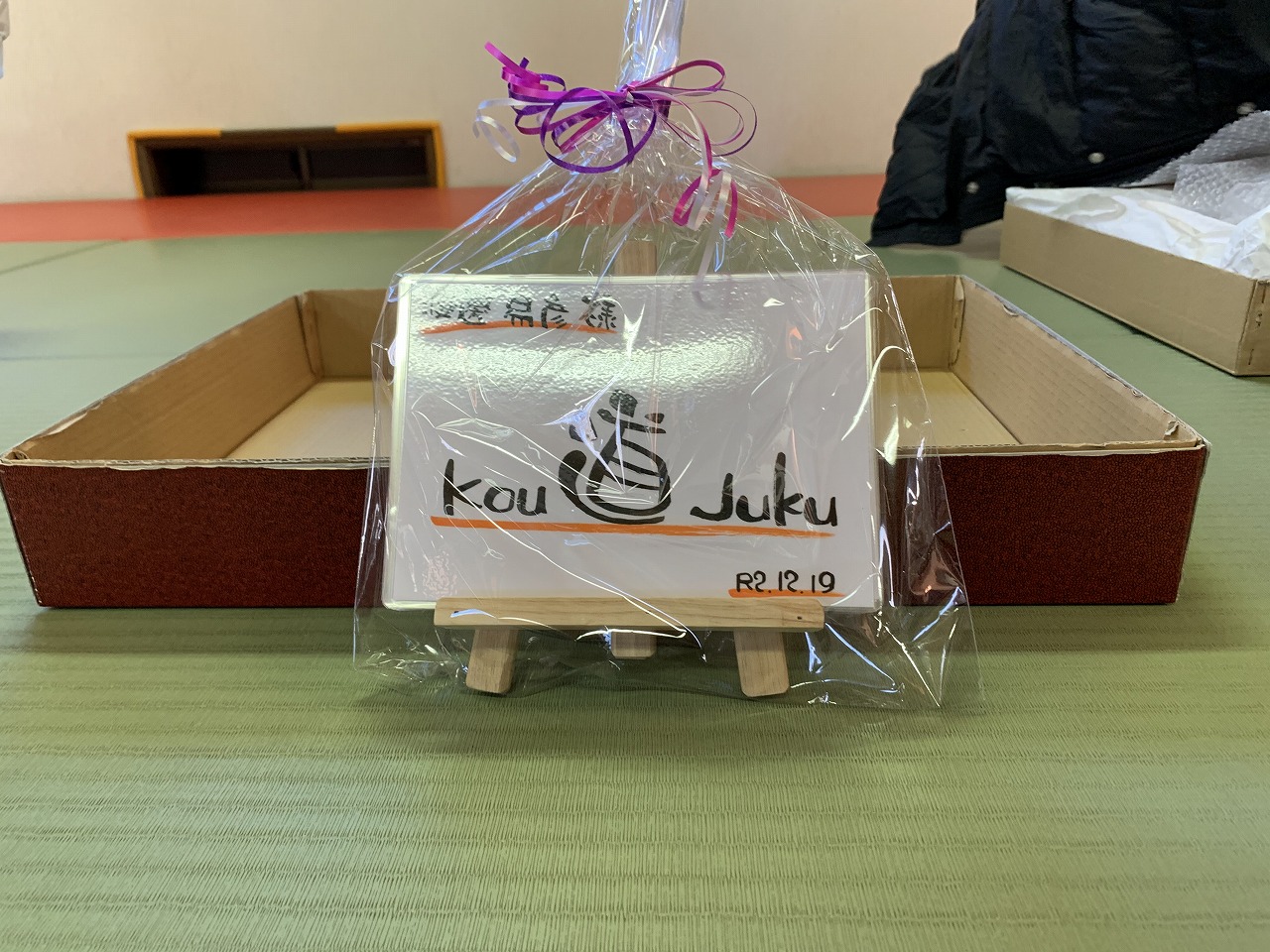 そしてここからは子供達へのサプライズ!いつもは試合終了後に年間報告会とカレ-パ-ティ-ですが今年はケンタッキーフライドチキンセット・ケーキ・ミスタードーナッツお菓子・ドリンク等々ご父兄やいろんな方々からの差し入れがお土産です。参加賞には今大人気の鬼滅の刃キャラクタ-の折り紙(非常にクオリティーが高いです!)を仙子先生が用意してくれてみんな大喜びでした。