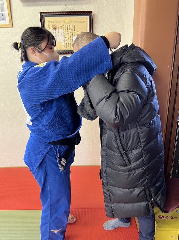 胸に日の丸のついた柔道着と大きな金メダルは迫力抜群!!首にかけてもらったり、集合写真をとったりみんなでポーズ!(^^)!
